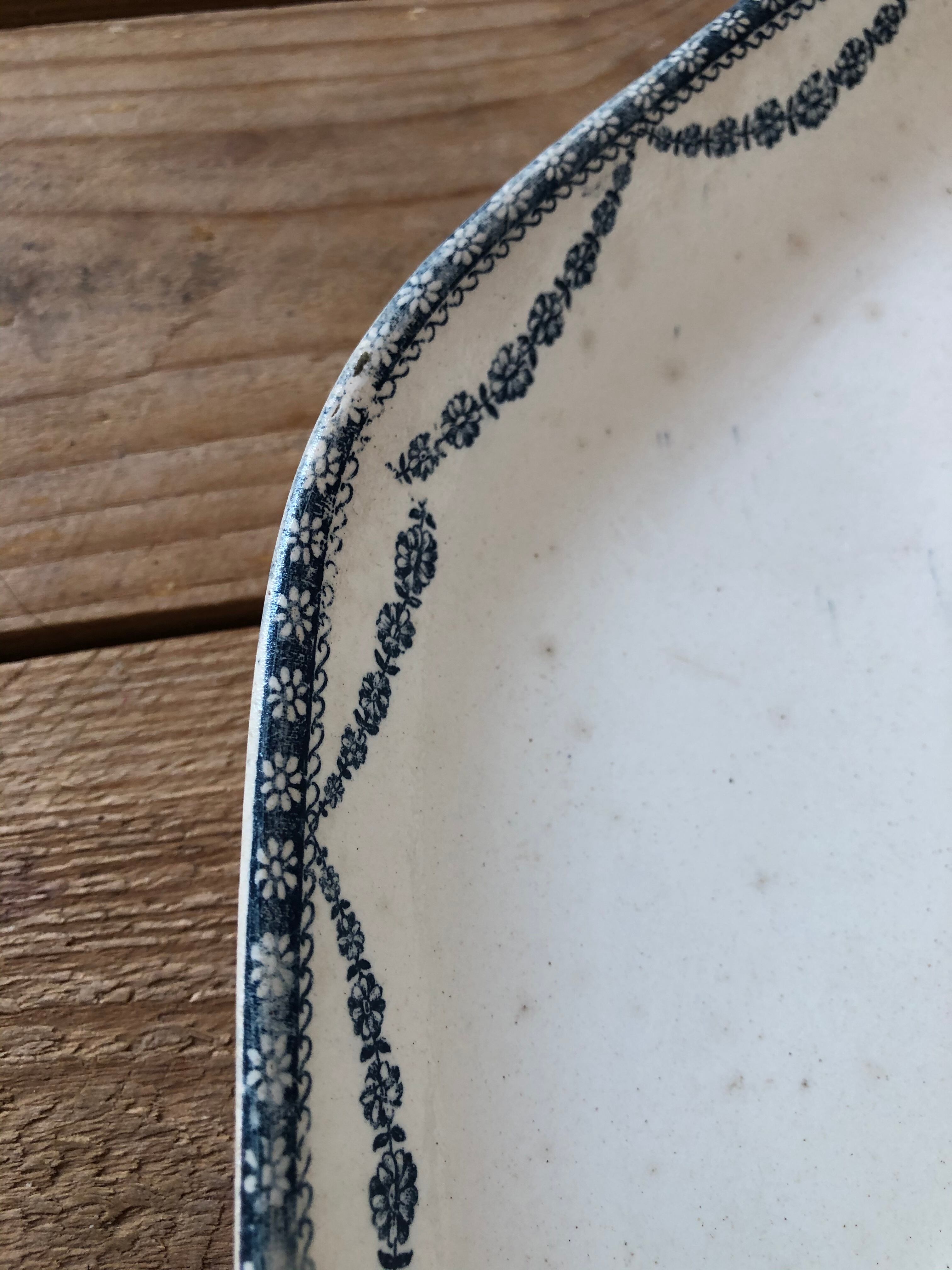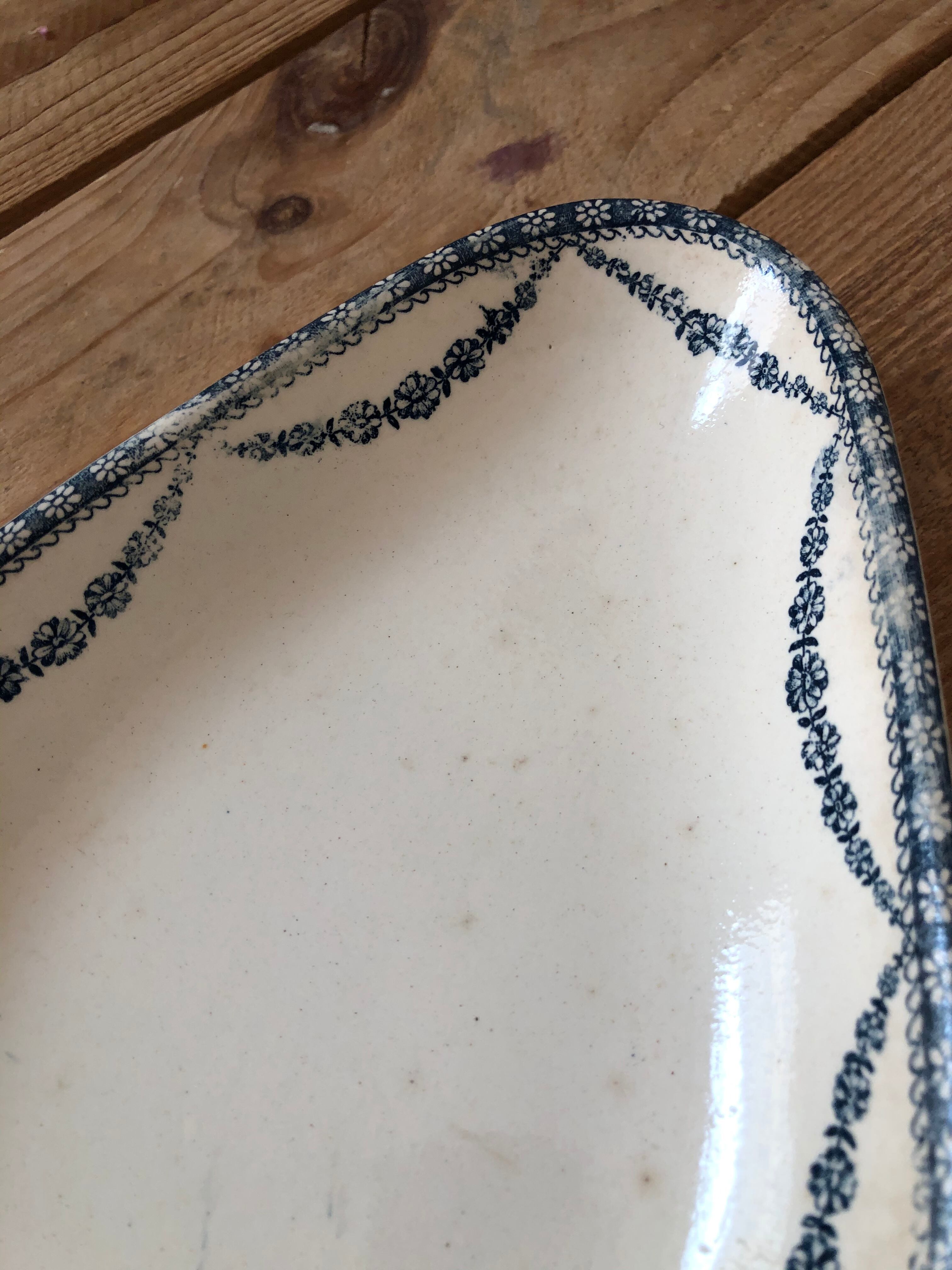 アイボリー地に、濃いブルーの小さなお花のガーランド模様が、