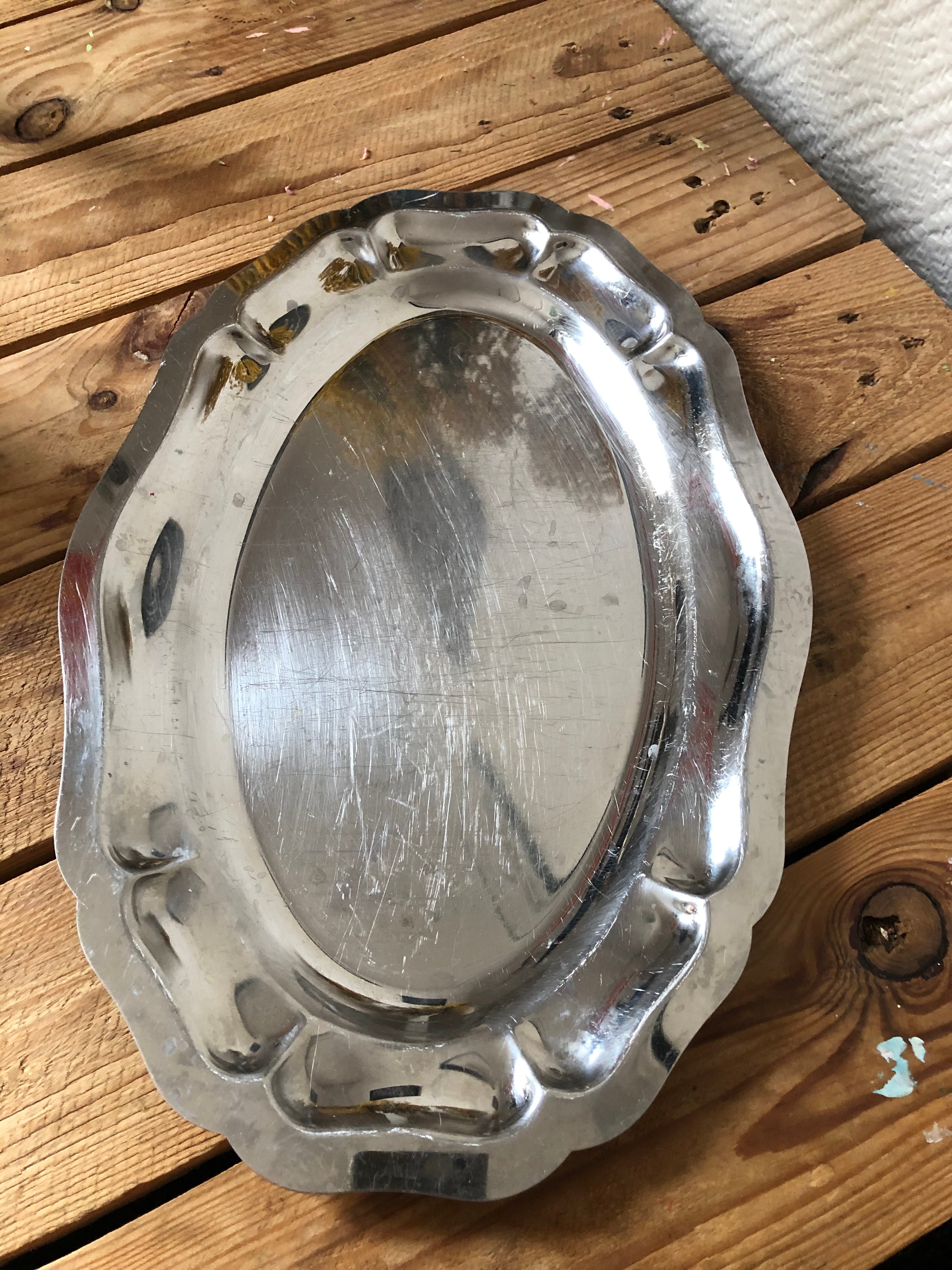 Inox (イノックス)ステンレス製の、大きなサイズの花リムプレートです。