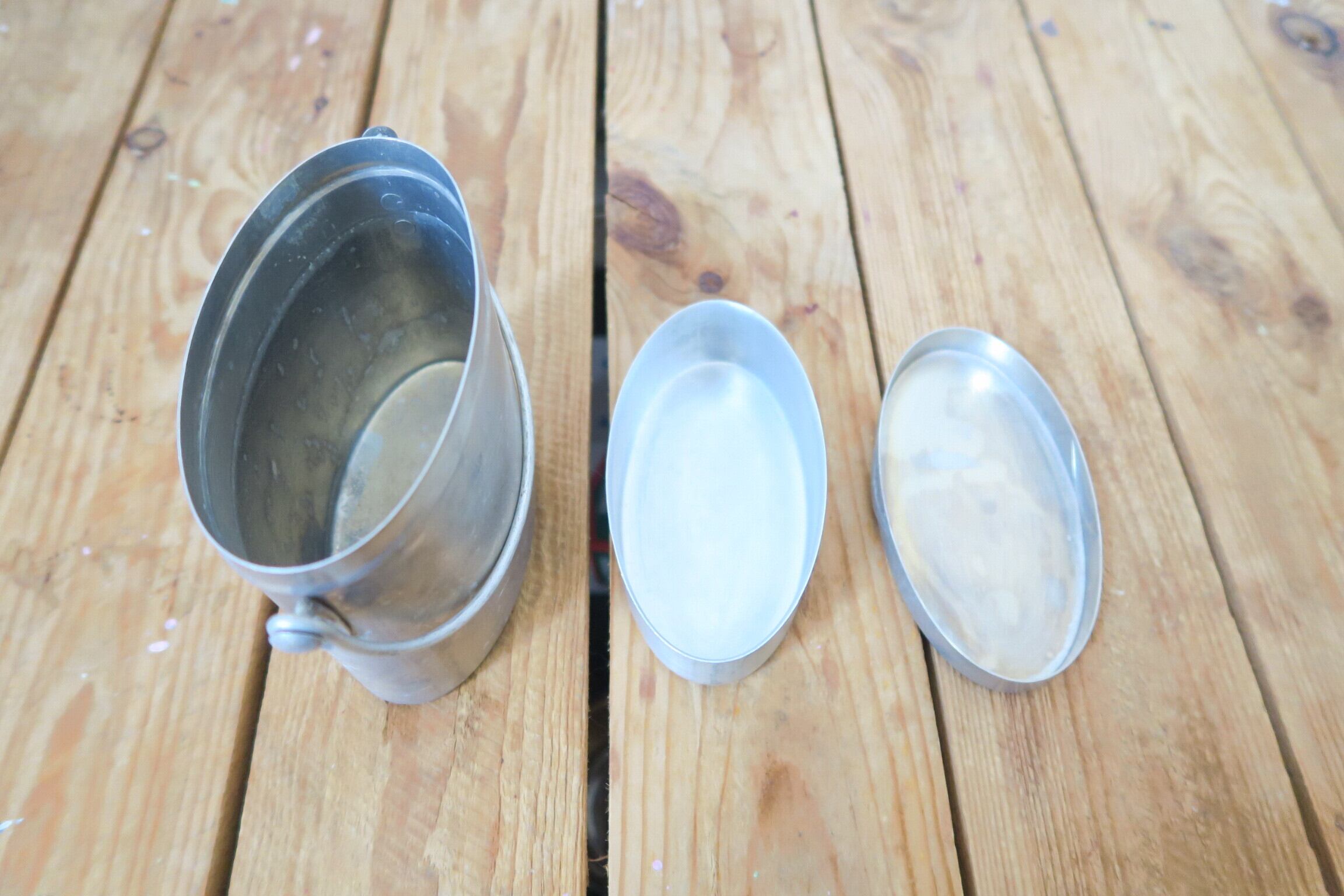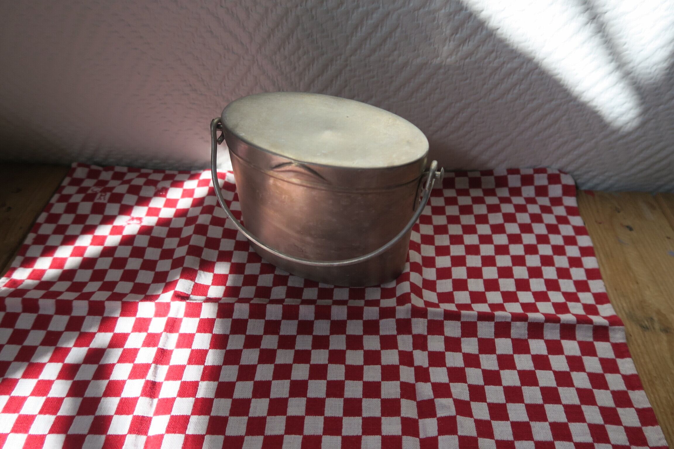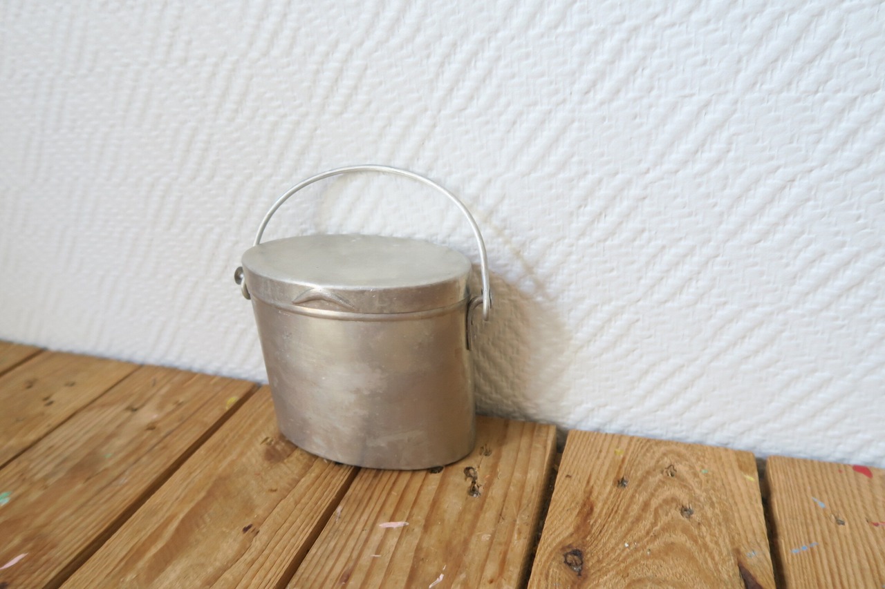 フランスの小さなブロカントで年配のマダムが自宅の不要品処分として販売されていた、アルミ製のミリタリーランチボックスです。